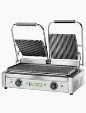 Piastra doppia in ghisa rigata. Struttura in acciaio Inox. EasyLine by FIMAR. Modello EG03. Misure 570x305x210/500(h) mm